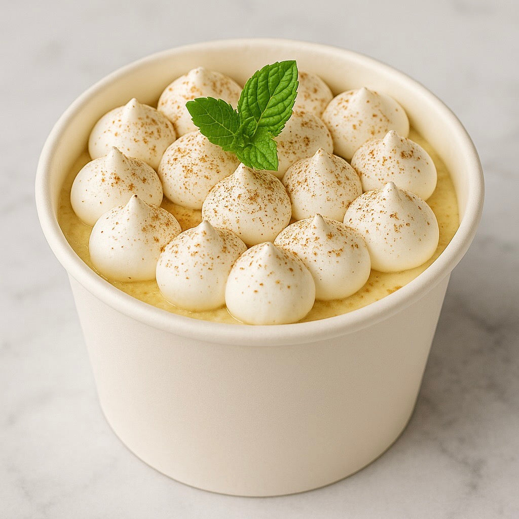 Torta de tres leches de 8 oz elaborada con bizcocho esponjoso, bañada en una mezcla cremosa de leches, rellena con suave manjar de olla y decorada con delicado merengue artesanal.